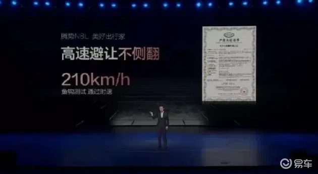发布会上,腾势还公布了多项N8L的安全测试数据,包括:180km/h高速爆胎不失稳、150km/h横风侧吹不跑偏、128km/h高速避让不甩尾、93.6km/h的麋鹿测试成绩。