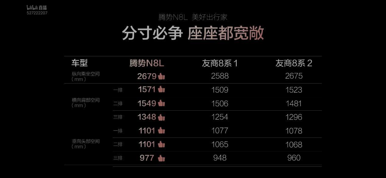 腾势N8L的发力点依旧是多人乘坐体验,首先解决的痛点是拥挤。官方说车内使用面积达到6.11平方米,这个数据听起来有些夸张,但5.2m的车身长度和2米车宽带来的先天优势不可否认,窗沿平切设计带来"移动大平层"的开阔感进一步增强了车内乘员尤其是后排的宽敞体感。