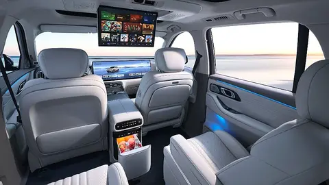 智能化方面,这款车支持“可见即可控”,车内空调、可移动的“如意中岛”、冰箱、座椅及前后排屏幕均可实现便捷的联动与控制。