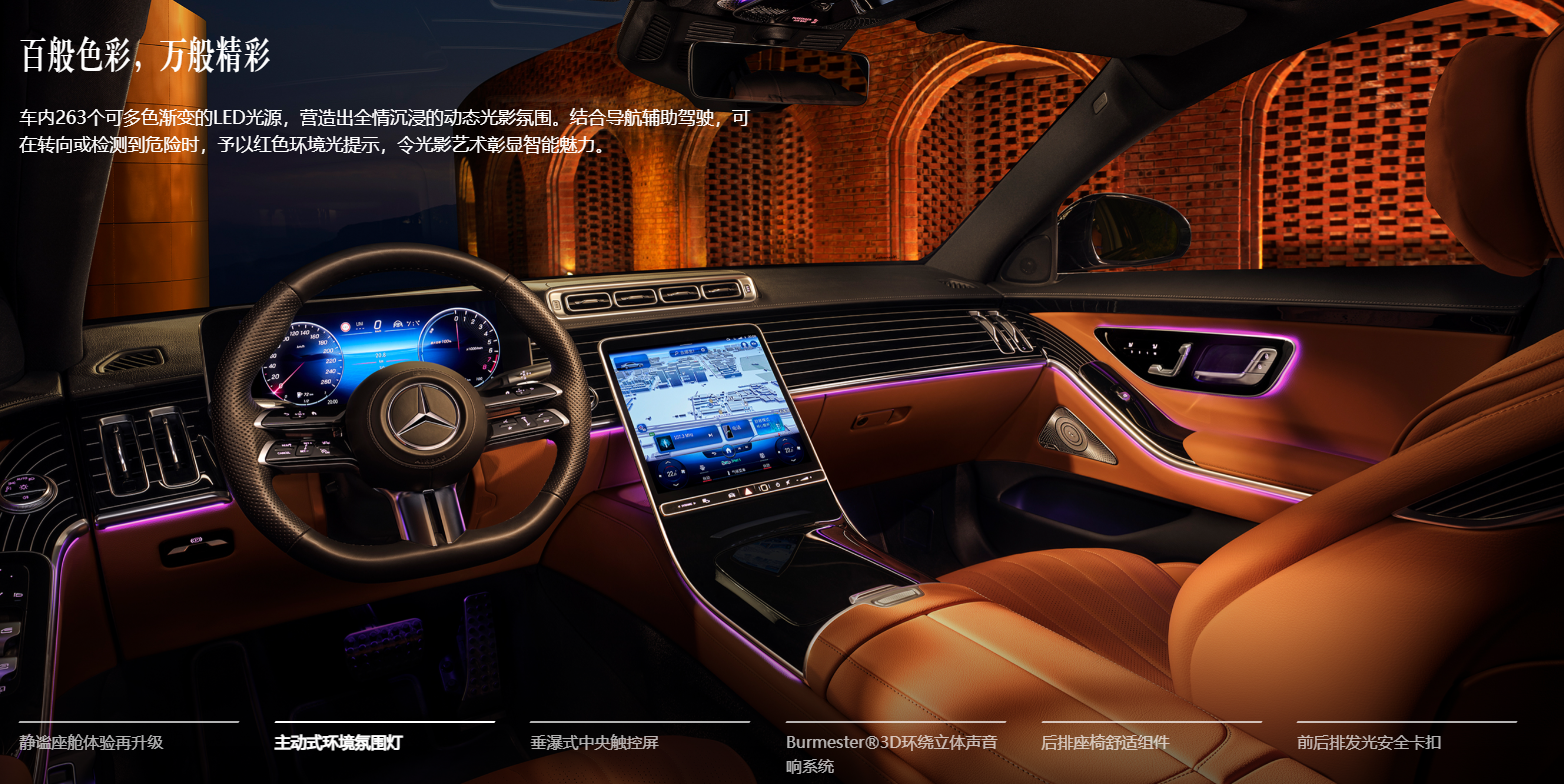 S 500 L 4MATIC搭载3.0T+48V轻混系统,最大功率448马力,峰值扭矩520牛·米