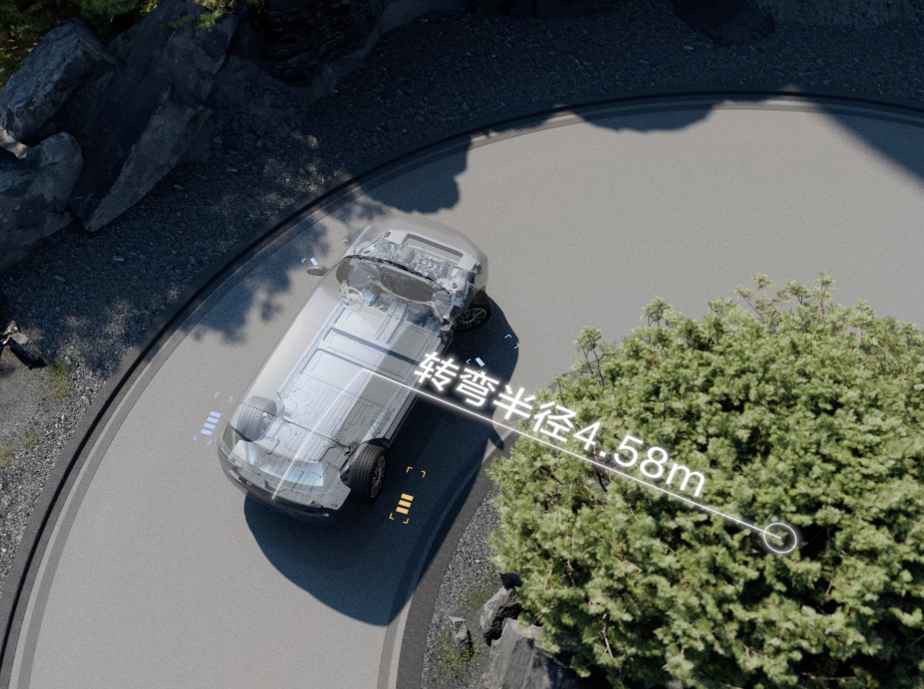 驾控上,全系标配 “易三方” 平台,零百加速 3.9 秒,刹车距离 35.4 米,后轮独立转向实现 4.58 米同级最小转弯半径;搭载插混专用刀片电池,CLTC 纯电续航 230km、综合续航 1300km,底盘采用前双叉臂 + 后五连杆悬架,还配备云辇 - A 智能空气车身控制系统和预瞄 2.0。
